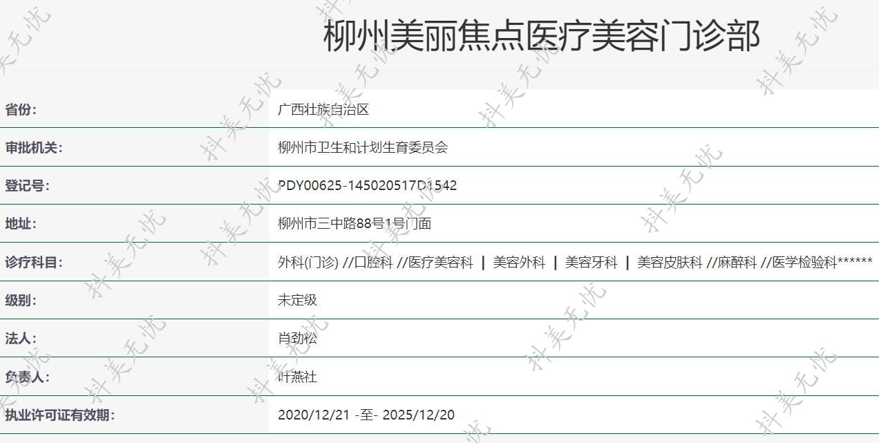 機構(gòu)名稱:柳州美麗焦點醫(yī)療美容門診部