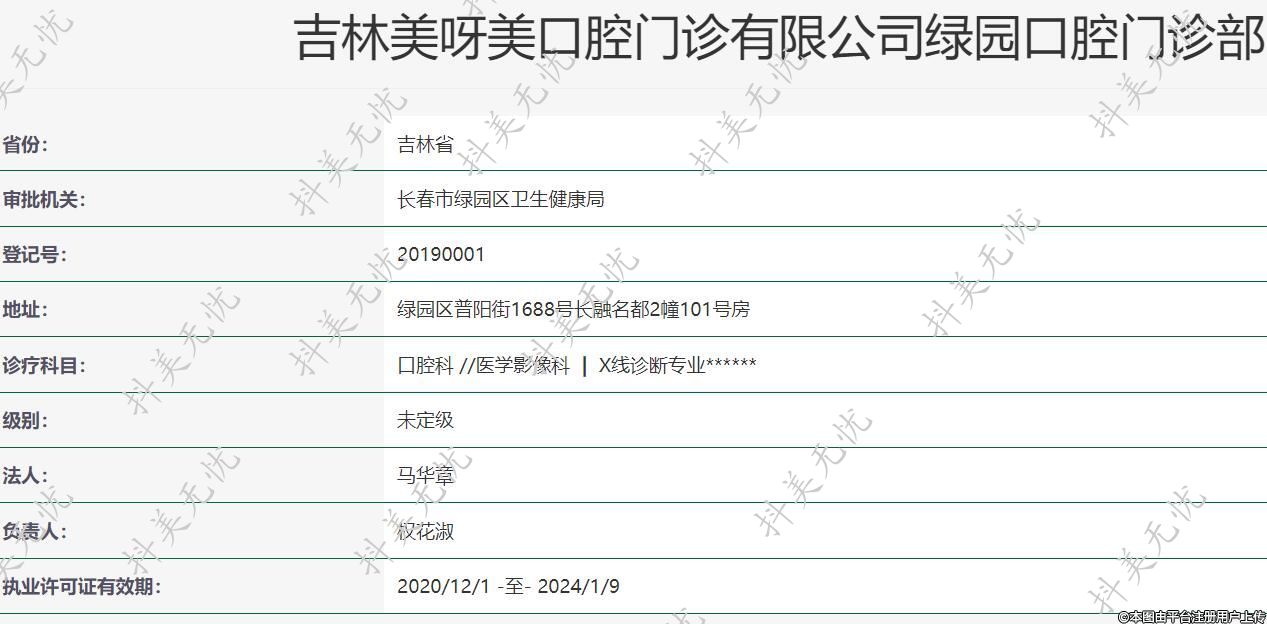 機(jī)構(gòu)名稱(chēng):吉林美呀美口腔門(mén)診有限公司