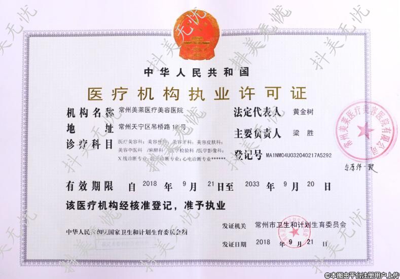 發(fā)證機關(guān):常州市衛(wèi)生和計劃生育委員會