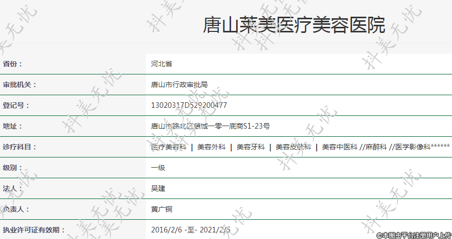執(zhí)業(yè)許可證有效期:2016/2/6 -至- 2021/2/5