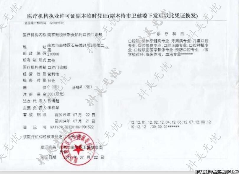 醫(yī)療機構(gòu)名稱:南京鼓樓維斯金鉑利口腔門診部