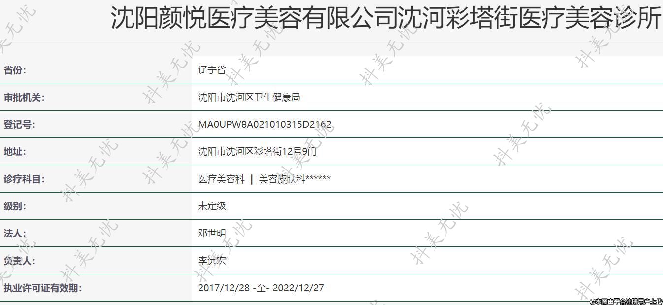 沈陽(yáng)顏悅醫(yī)療美容有限公司沈河彩塔街醫(yī)療美容診所
