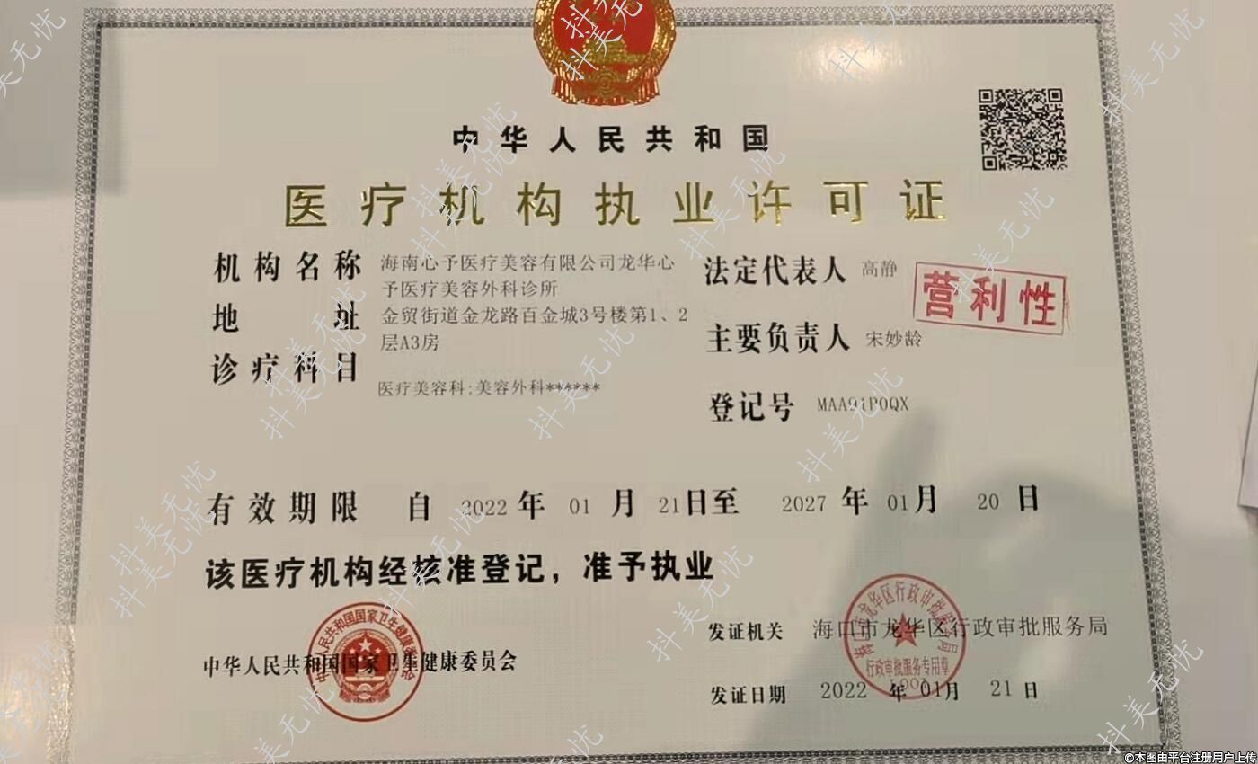 機構(gòu)名稱:海南心子醫(yī)療美容有限公司龍華心予醫(yī)療美容外科診所