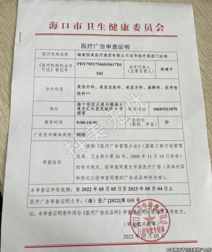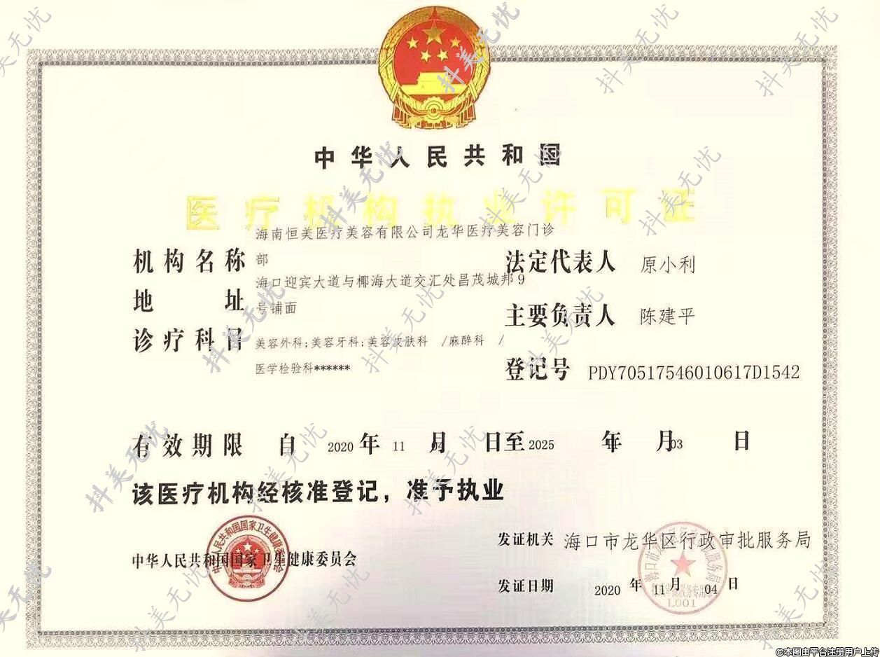 機(jī)構(gòu)名稱:海南恒美醫(yī)療美容有限公司龍華醫(yī)療美容門診部