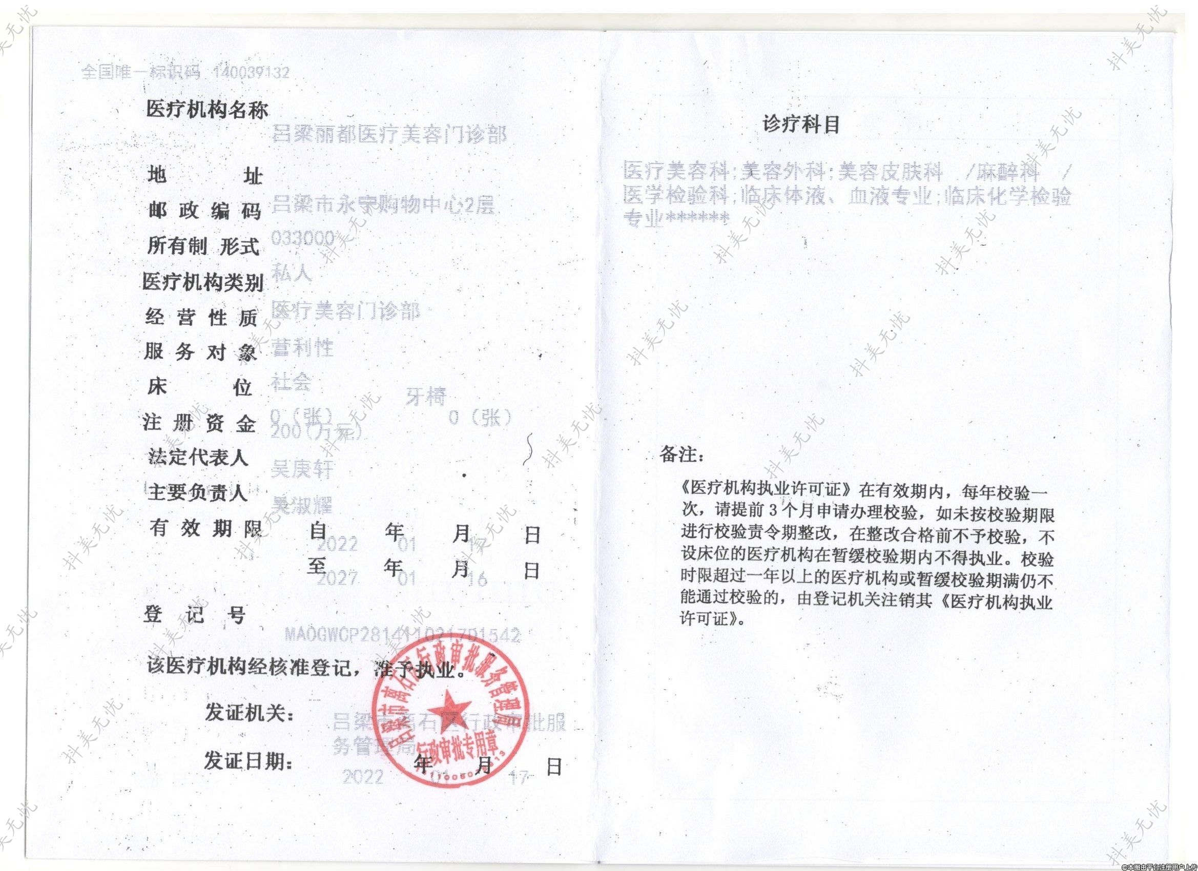 醫(yī)療機(jī)構(gòu)名稱:呂梁麗都醫(yī)療美容門診部