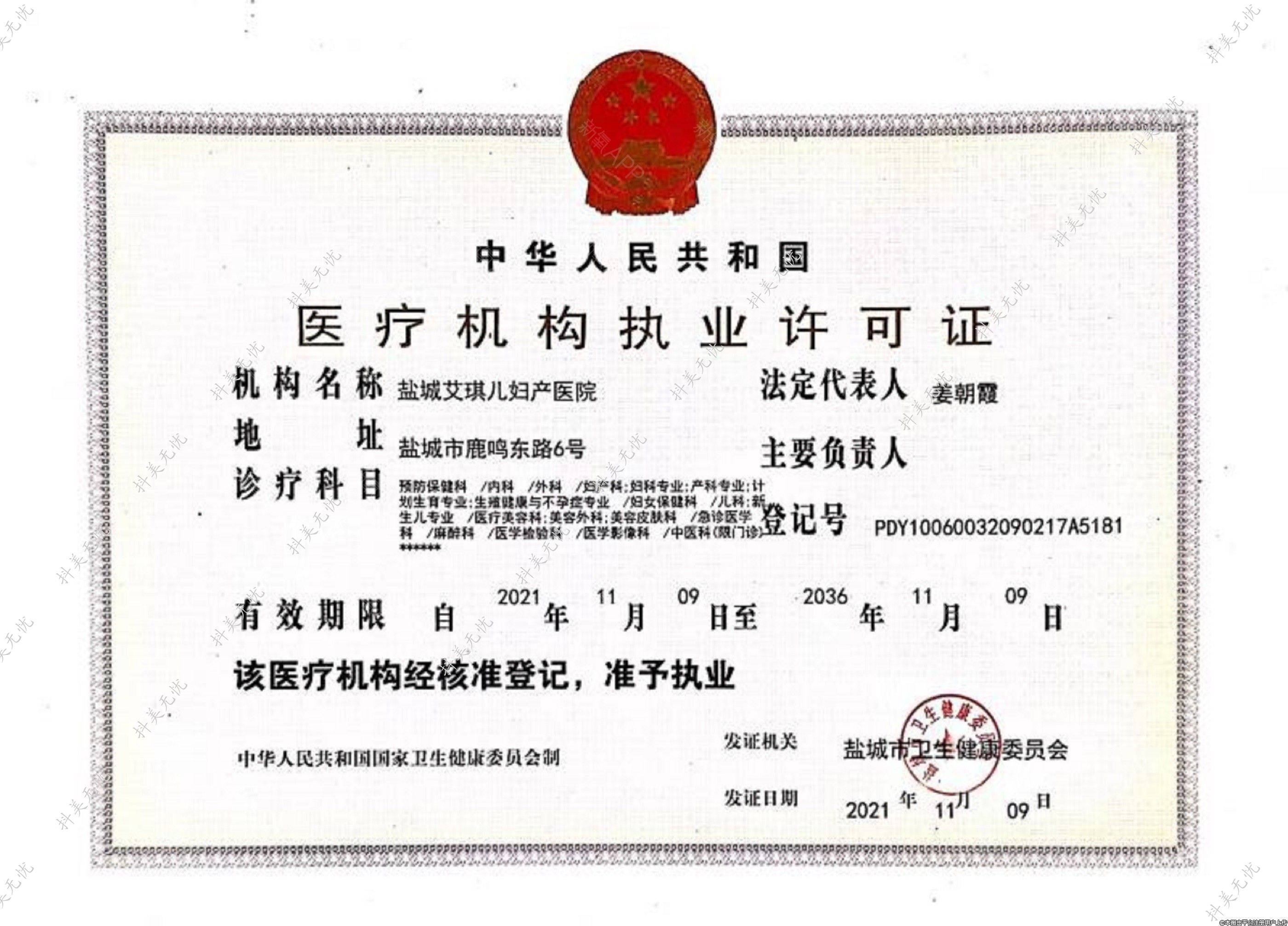 發(fā)證機關:鹽城市衛(wèi)生健康委員會