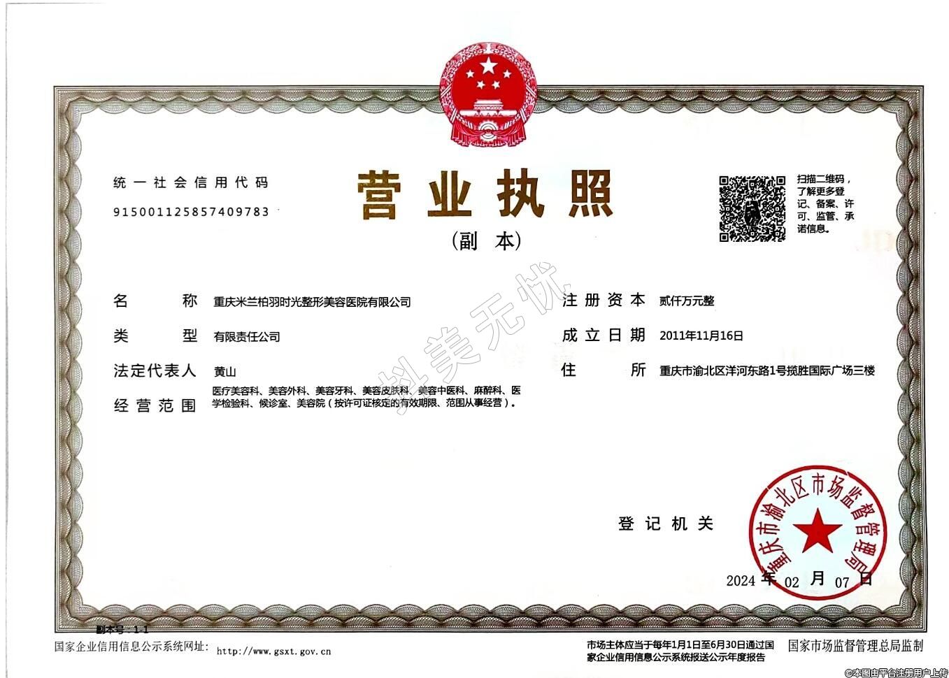 發(fā)證機(jī)關(guān):重慶市渝北區(qū)衛(wèi)生健康委員會(huì)