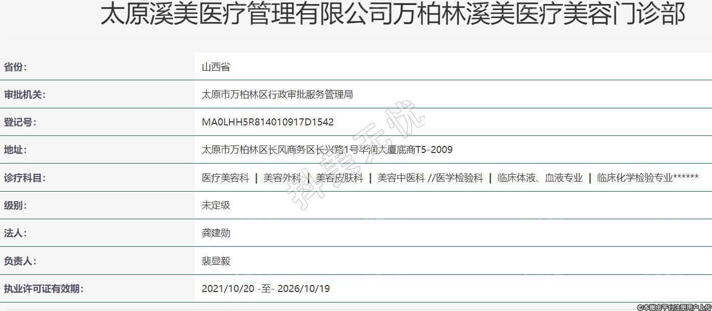 太原溪美醫(yī)療管理有限公司萬柏林溪美醫(yī)療美容門診部