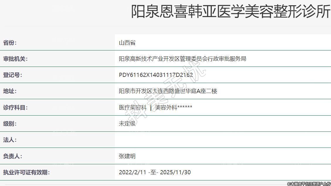 陽泉恩喜韓亞醫(yī)學美容成立于2016-07-12,地址:陽泉市開發(fā)區(qū)大連西路盛世華庭A座二樓,診療科目:醫(yī)療美容科 | 美容外科******