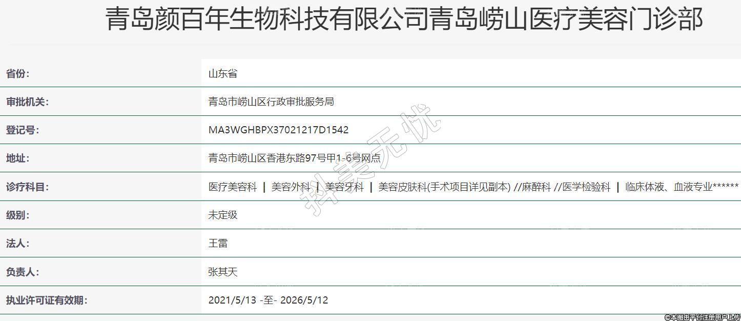 青島顏百年生物科技有限公司青島嶗山醫(yī)療美容門診部