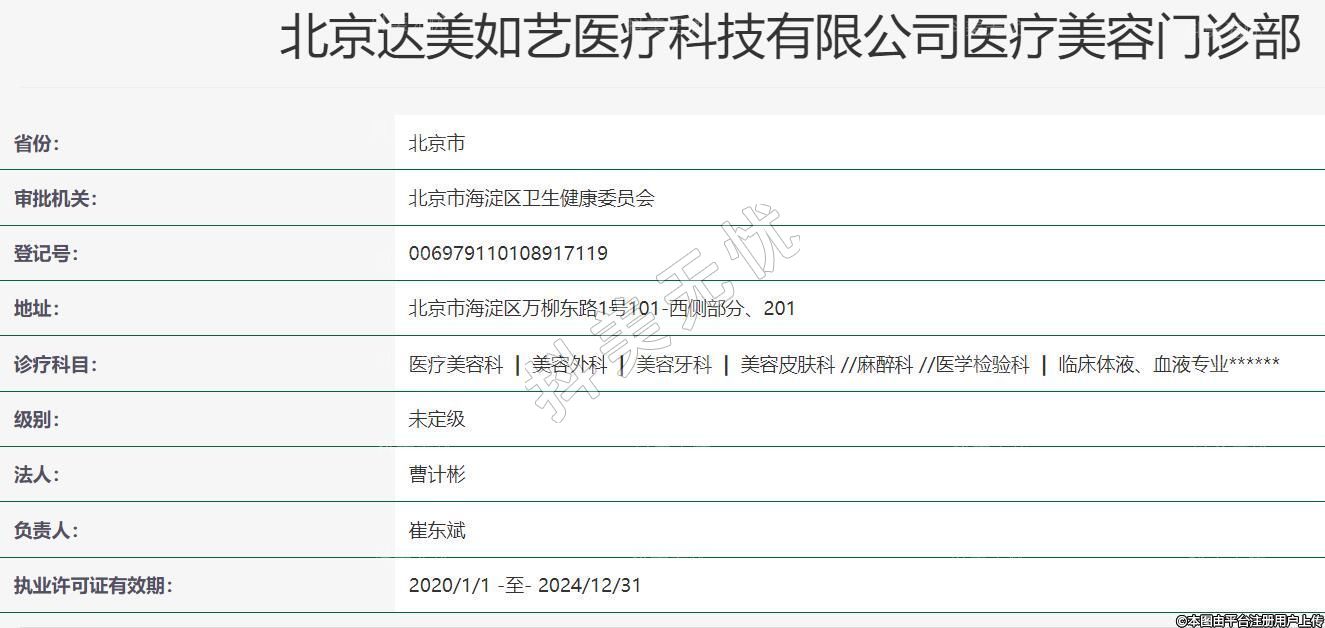北京達(dá)美如藝醫(yī)療科技有限公司醫(yī)療美容門(mén)診部