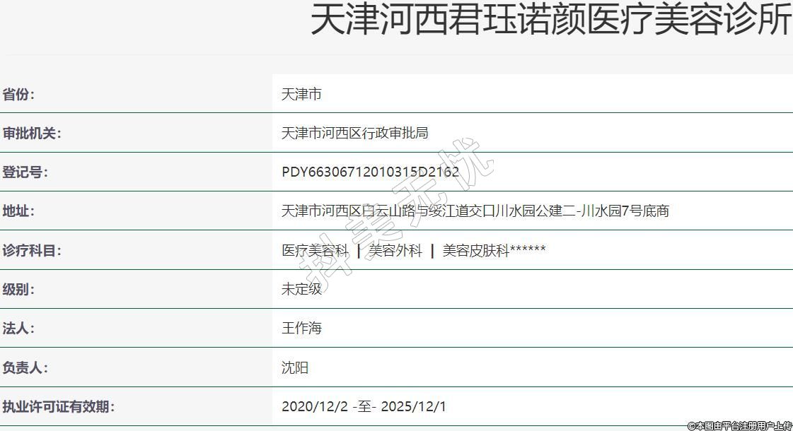 天津君玨諾顏醫(yī)療美容,地址:天津市河西區(qū)白云山路與綏江道交口川水園公建二-川水園7號底商,診療科目:醫(yī)療美容科 | 美容外科 | 美容皮膚科******