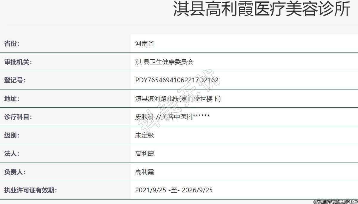 淇縣高利霞醫(yī)療美容診所位于河南省鶴壁巿淇縣淇河路北段(豪門(mén)盛世樓下),成立于2016-04-26,科室范圍為皮膚科,美容中醫(yī)科。