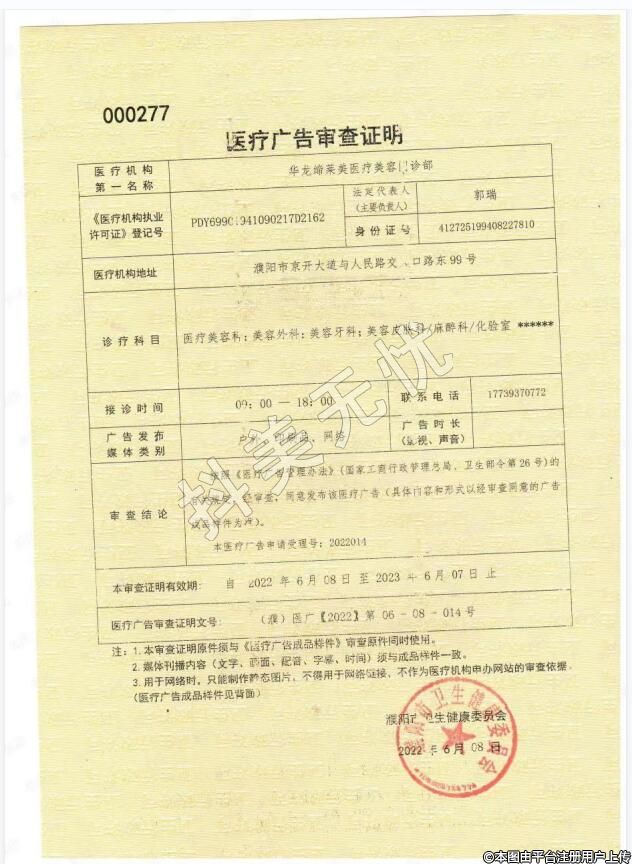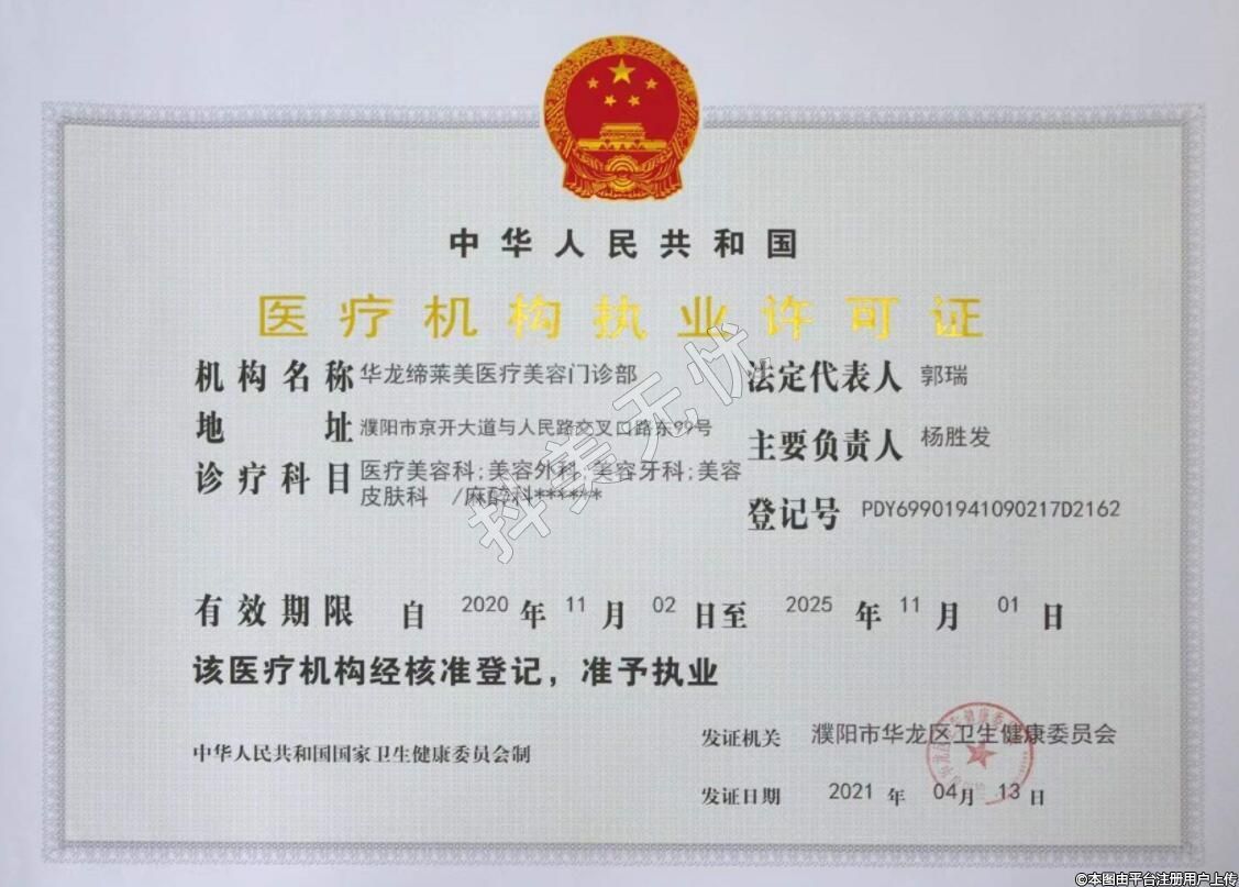 發(fā)證機關:濮陽市龍華區(qū)衛(wèi)生健康委員會