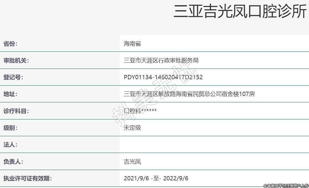 三亞吉光鳳口腔診所成立于2016-03-24,位于海南省三亞市天涯區(qū)解放路海南省民貿(mào)總公司宿舍樓107房??剖曳秶锌谇豢啤?