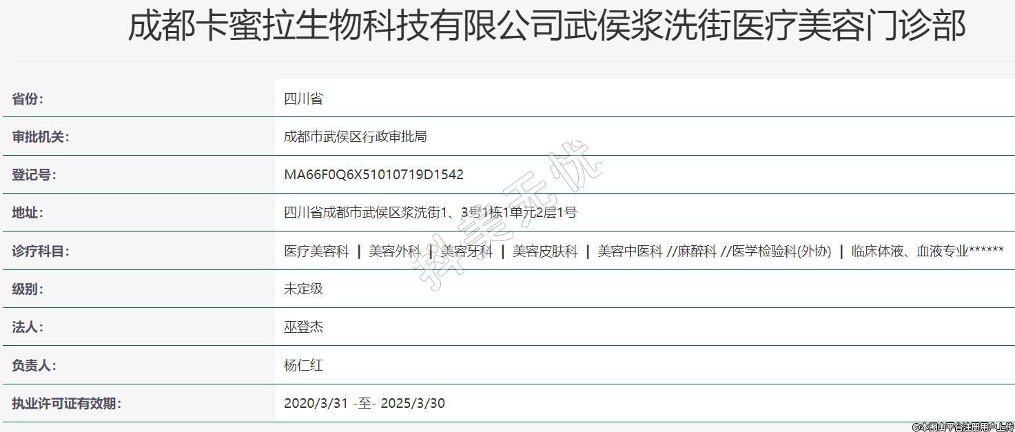 成都卡蜜拉生物科技有限公司武侯漿洗街醫(yī)療美容門(mén)診部