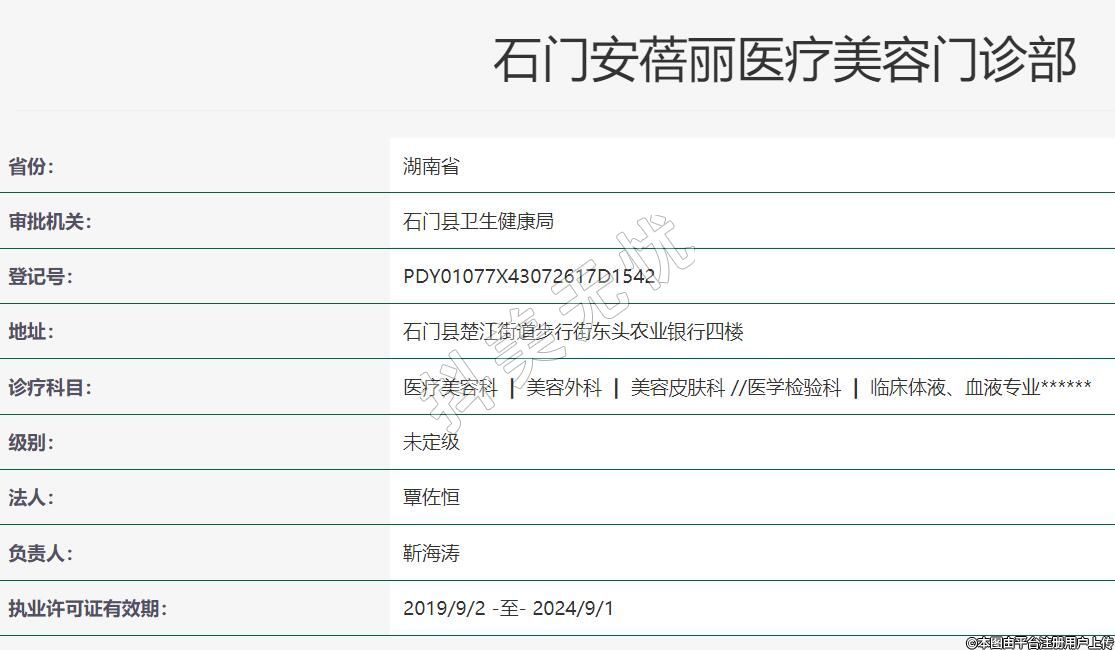石門安蓓麗醫(yī)療美容2018-07-16成立,地址:石門縣楚江街道步行街東頭農(nóng)業(yè)銀行四樓,診療科目:醫(yī)療美容科 | 美容外科 | 美容皮膚科 //醫(yī)學(xué)檢驗(yàn)科 | 臨床體液、血液專業(yè)******