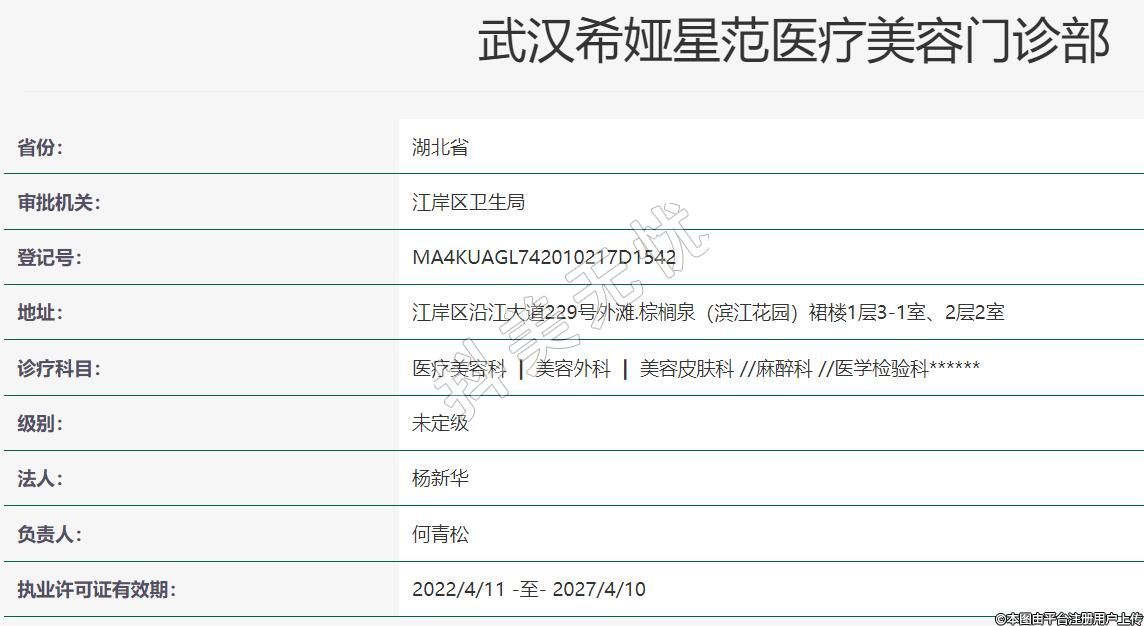 武漢希婭星范醫(yī)療美容門診部