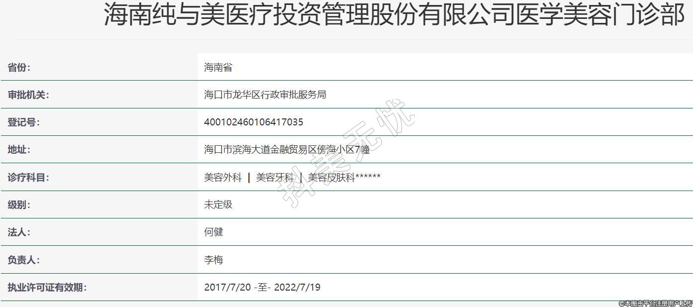 海南純與美醫(yī)療投資管理股份有限公司醫(yī)學(xué)美容門(mén)診部