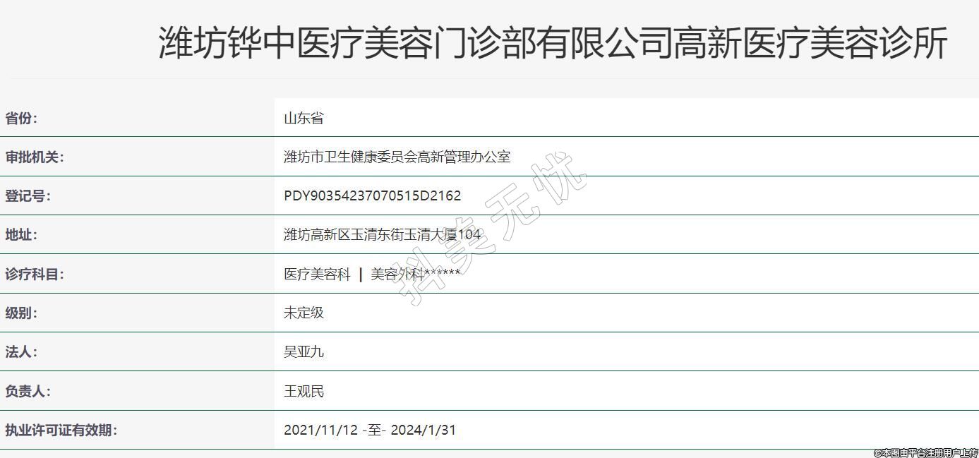 濰坊鏵中醫(yī)療美容門(mén)診部有限公司高新醫(yī)療美容診所