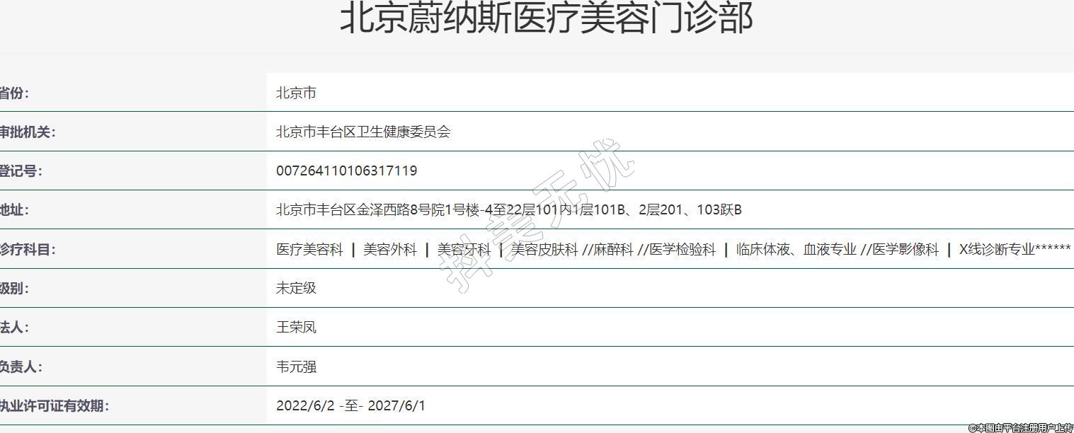 北京蔚納斯醫(yī)療美容2020年11月05日成立,診療科目:醫(yī)療美容科 | 美容外科 | 美容牙科 | 美容皮膚科 //麻醉科 //醫(yī)學檢驗科 | 臨床體液、血液專業(yè) //醫(yī)學影像科 | X線診斷專業(yè)******
