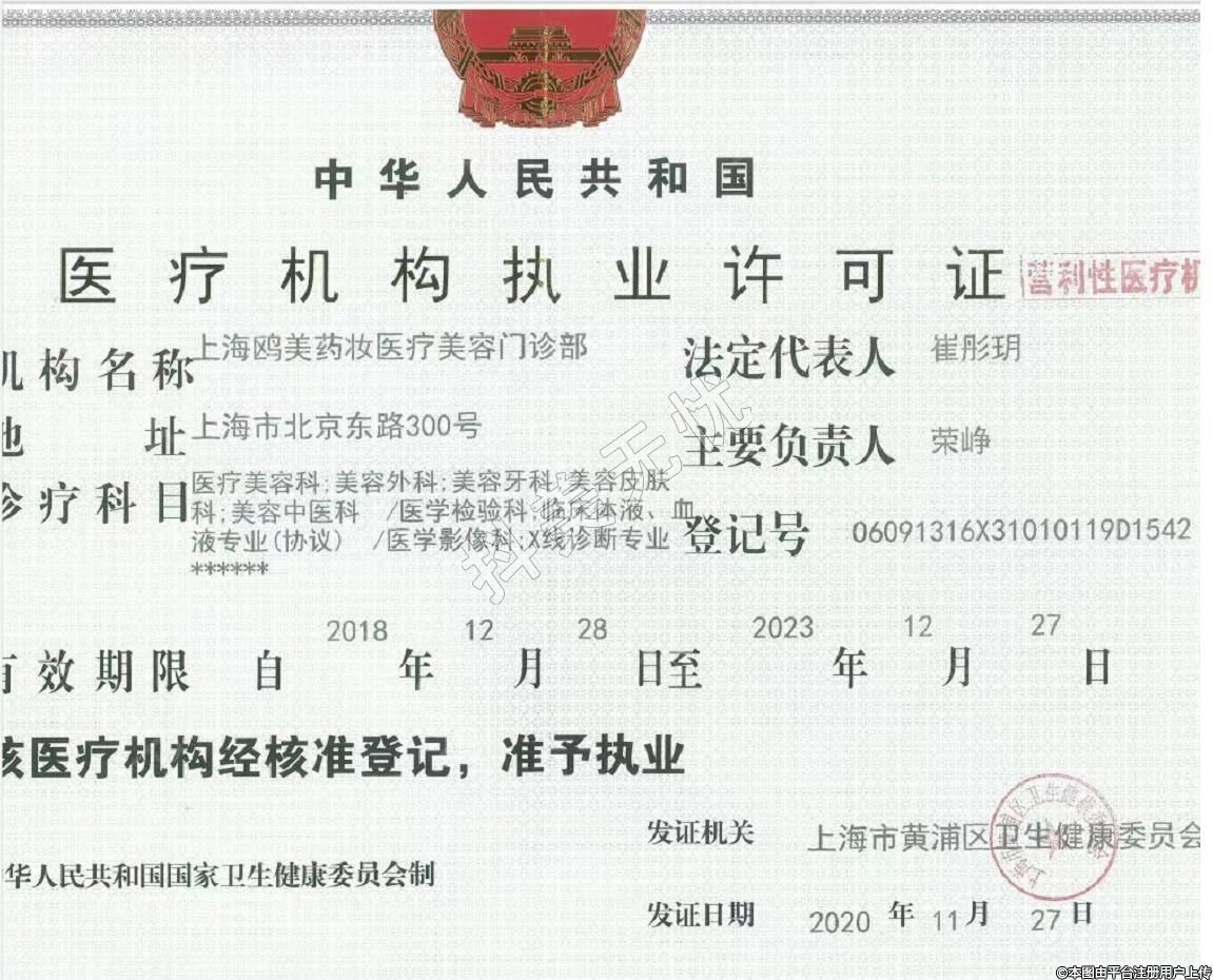 發(fā)證機關(guān):上海市黃浦區(qū)衛(wèi)生健康委員會