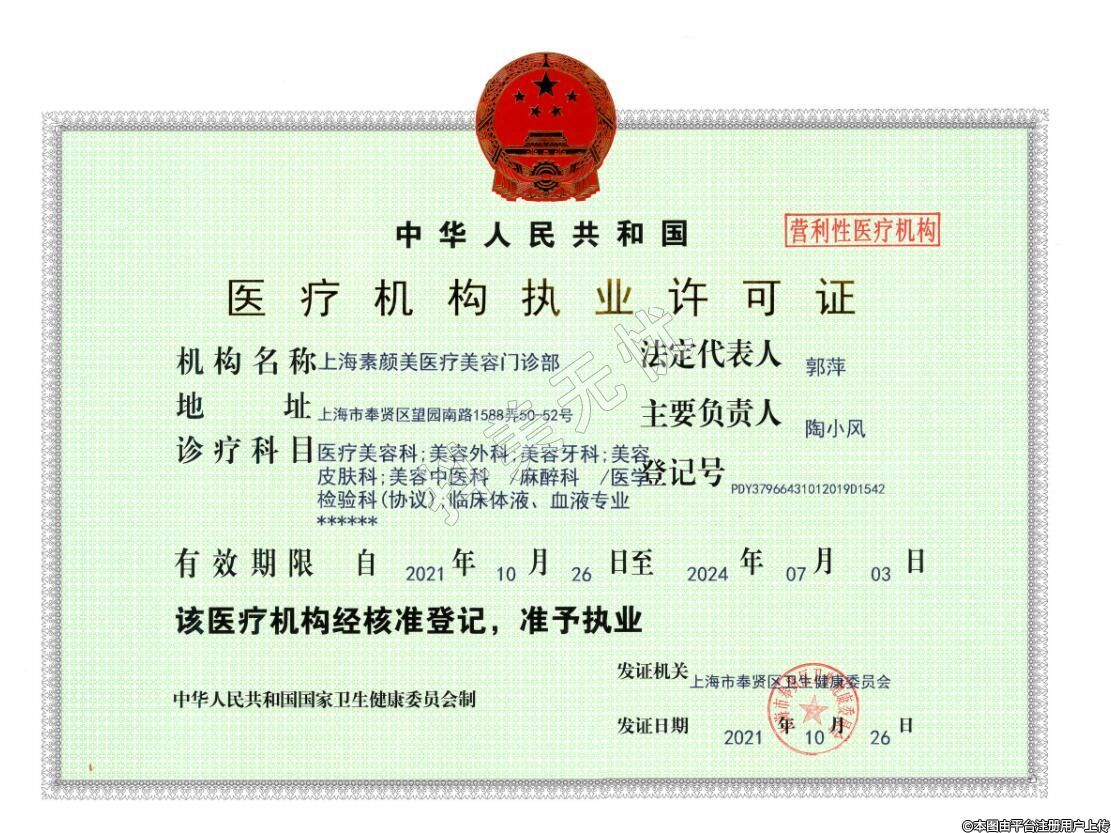 發(fā)證機關:上海市奉賢區(qū)衛(wèi)生健康委員會