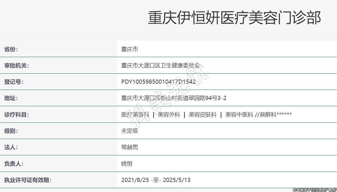 伊恒妍醫(yī)療美容門診部位于重慶市大渡口區(qū),成立于2015年,是衛(wèi)生健康委員會審核批準(zhǔn)成立的醫(yī)療美容機(jī)構(gòu)。診療科目:醫(yī)療美容科 | 美容外科 | 美容皮膚科 | 美容中醫(yī)科 //麻醉科******