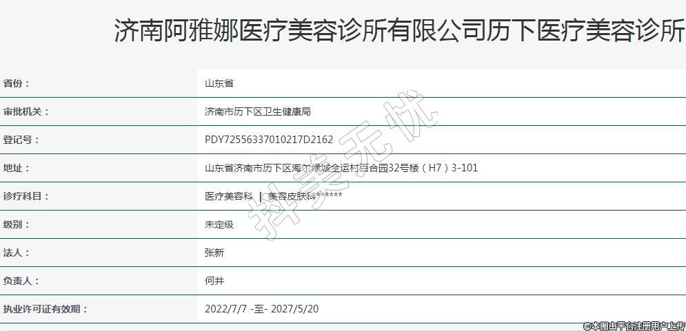濟(jì)南阿雅娜醫(yī)療美容診所有限公司歷下醫(yī)療美容診所