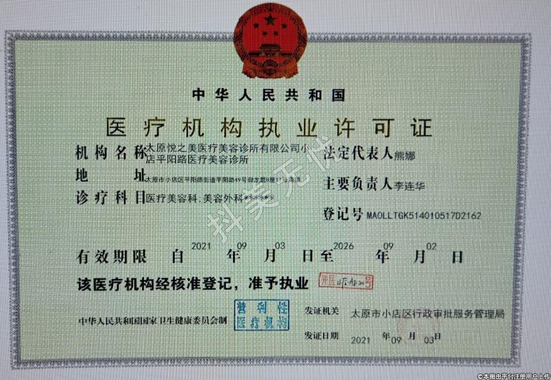 機(jī)構(gòu)名稱:太原悅之美醫(yī)療美容診所有限公司小店平陽路醫(yī)療美容診所