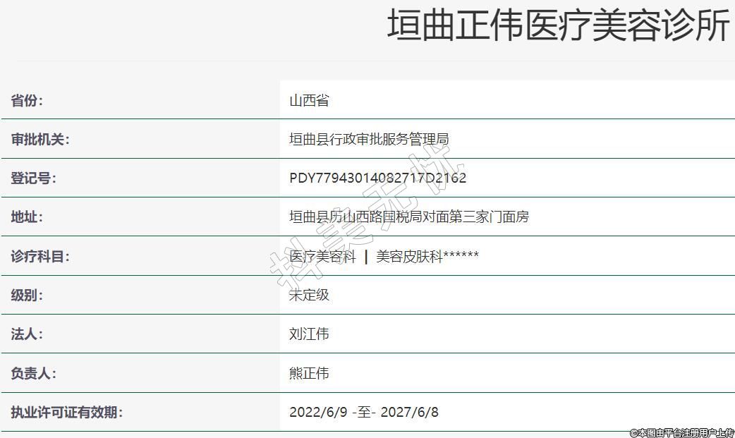垣曲正偉醫(yī)療美容地址:垣曲縣歷山西路國稅局對面第三家門面房,診療科目:醫(yī)療美容科 | 美容皮膚科******