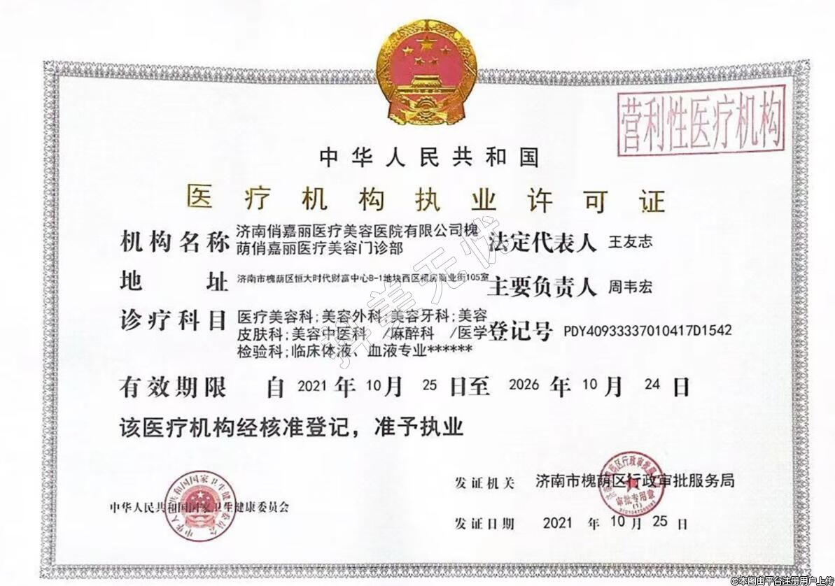 機構名稱:濟南俏嘉麗醫(yī)療美容醫(yī)院有限公司槐蔭俏嘉麗醫(yī)療美容門診部