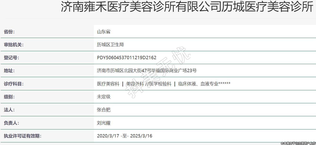 濟南雍禾醫(yī)療美容診所有限公司歷城醫(yī)療美容診所