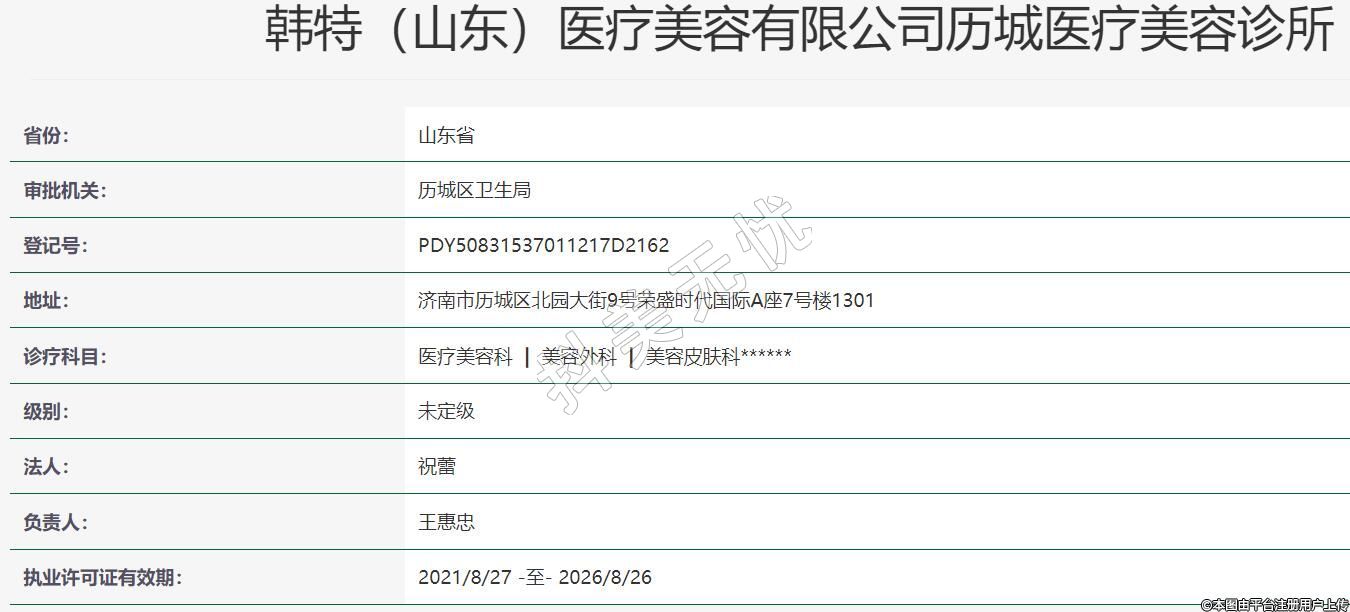 韓特(山東)醫(yī)療美容有限公司歷城醫(yī)療美容診所