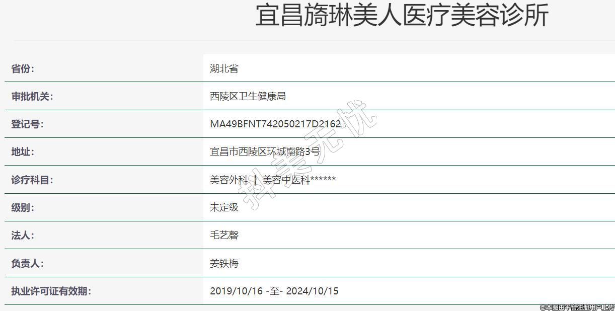 宜昌旖琳美人醫(yī)療美容2019年10月09日成立,地址:宜昌市西陵區(qū)環(huán)城南路3號,診療科目:美容外科 | 美容中醫(yī)科******