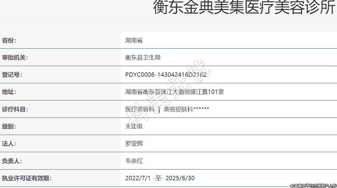 衡東金典美集醫(yī)療美容2019年04月30日成立,地址:湖南省衡東縣洣江大道恒盛江景101室,診療科目:醫(yī)療美容科 | 美容皮膚科******