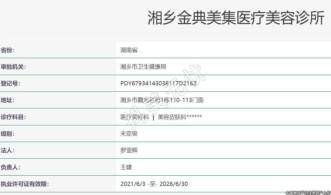 湘鄉(xiāng)金典美集醫(yī)療美容門診部于2019年成立,隸屬金典美集醫(yī)院集團(tuán),由湖南美集醫(yī)療管理有限、湖南美健瀟湘健康管理合伙企業(yè)(有限合伙)、湖南美集精英醫(yī)院管理合伙企業(yè)(有限合伙)聯(lián)合創(chuàng)立,注冊資本1億元人民幣,總部設(shè)在湖南省長沙市湘江新區(qū),是一家以打造“中國較大的醫(yī)療美容連鎖機(jī)構(gòu),構(gòu)建中國美麗經(jīng)濟(jì)產(chǎn)業(yè)生態(tài)鏈”為目標(biāo)的醫(yī)美產(chǎn)業(yè)平臺(tái)機(jī)構(gòu)。