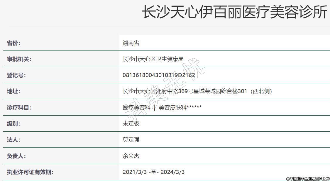長沙伊百麗醫(yī)療美容(天心)2014年03月11日成立,地址:長沙市天心區(qū)湘府中路369號星城榮域園綜合樓301(西北側(cè)),診療科目:醫(yī)療美容科 | 美容皮膚科******