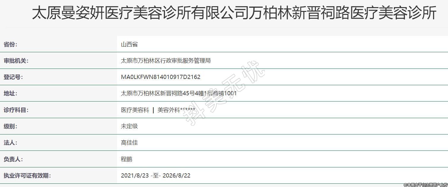 太原曼姿妍醫(yī)療美容診所有限公司萬柏林新晉祠路醫(yī)療美容診所