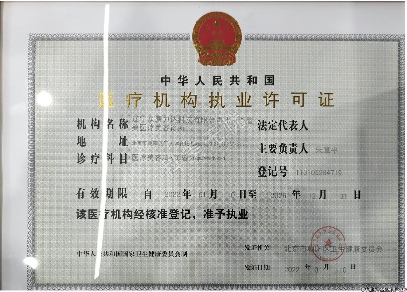 機構(gòu)名稱:遼寧眾康力達科技有限公司北京予馨美醫(yī)療美容診所
