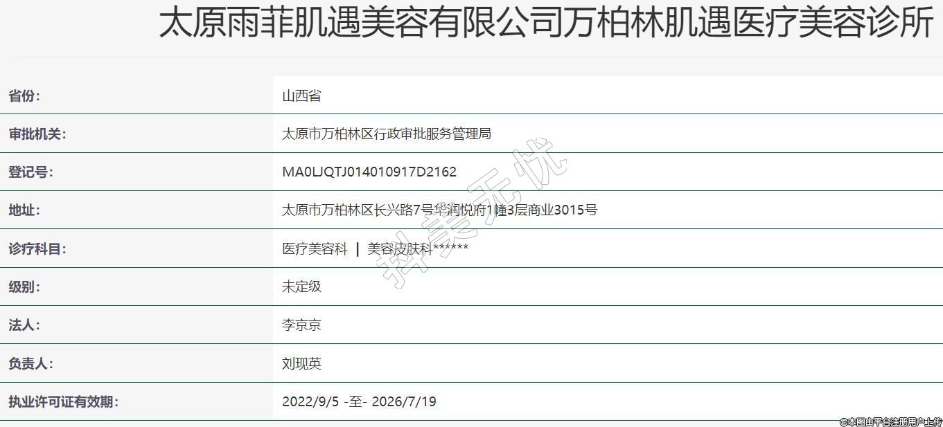 太原雨菲肌遇美容有限公司萬柏林肌遇醫(yī)療美容診所