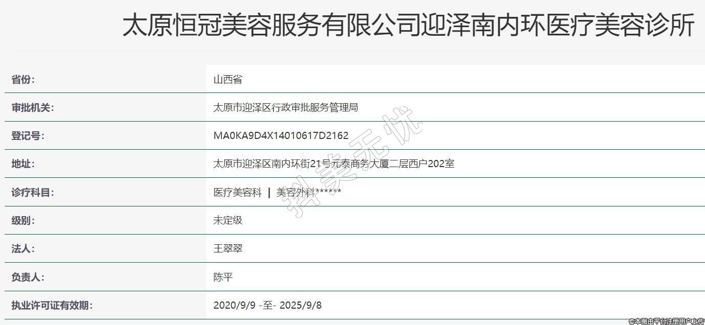 太原恒冠美容服務(wù)有限公司迎澤南內(nèi)環(huán)醫(yī)療美容診所