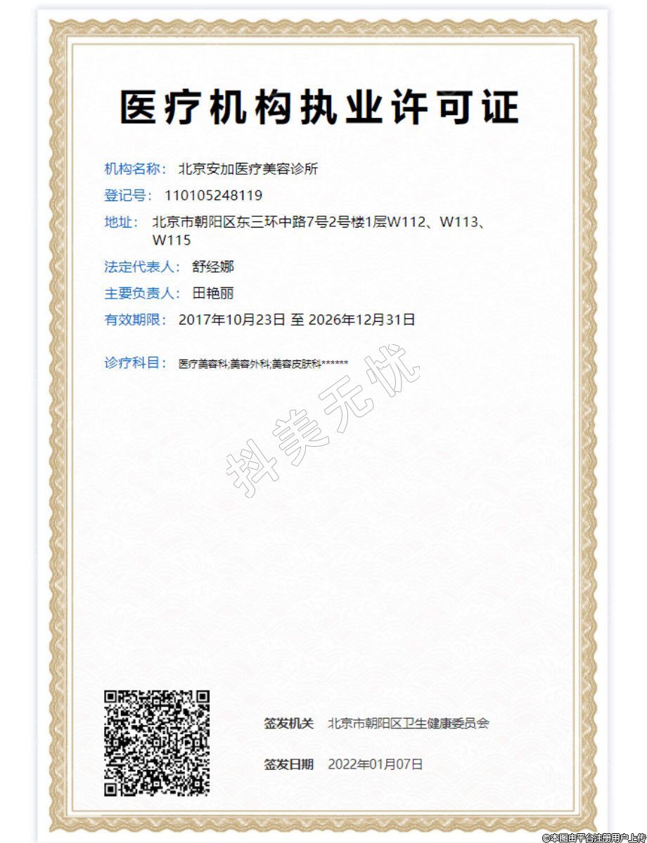 北京安加醫(yī)療美容2017-02-22成立,地址:北京市朝陽區(qū)東三環(huán)中路7號(hào)2號(hào)樓1層W112、W113、W115,診療科目:醫(yī)療美容科;美容外科;美容皮膚科******