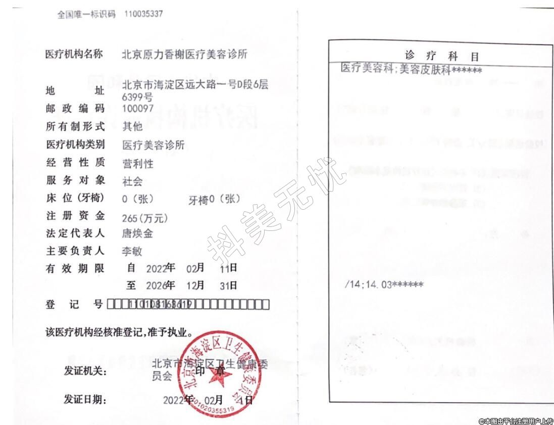 醫(yī)療機(jī)構(gòu)名稱:北京原力香榭醫(yī)療美容診所
