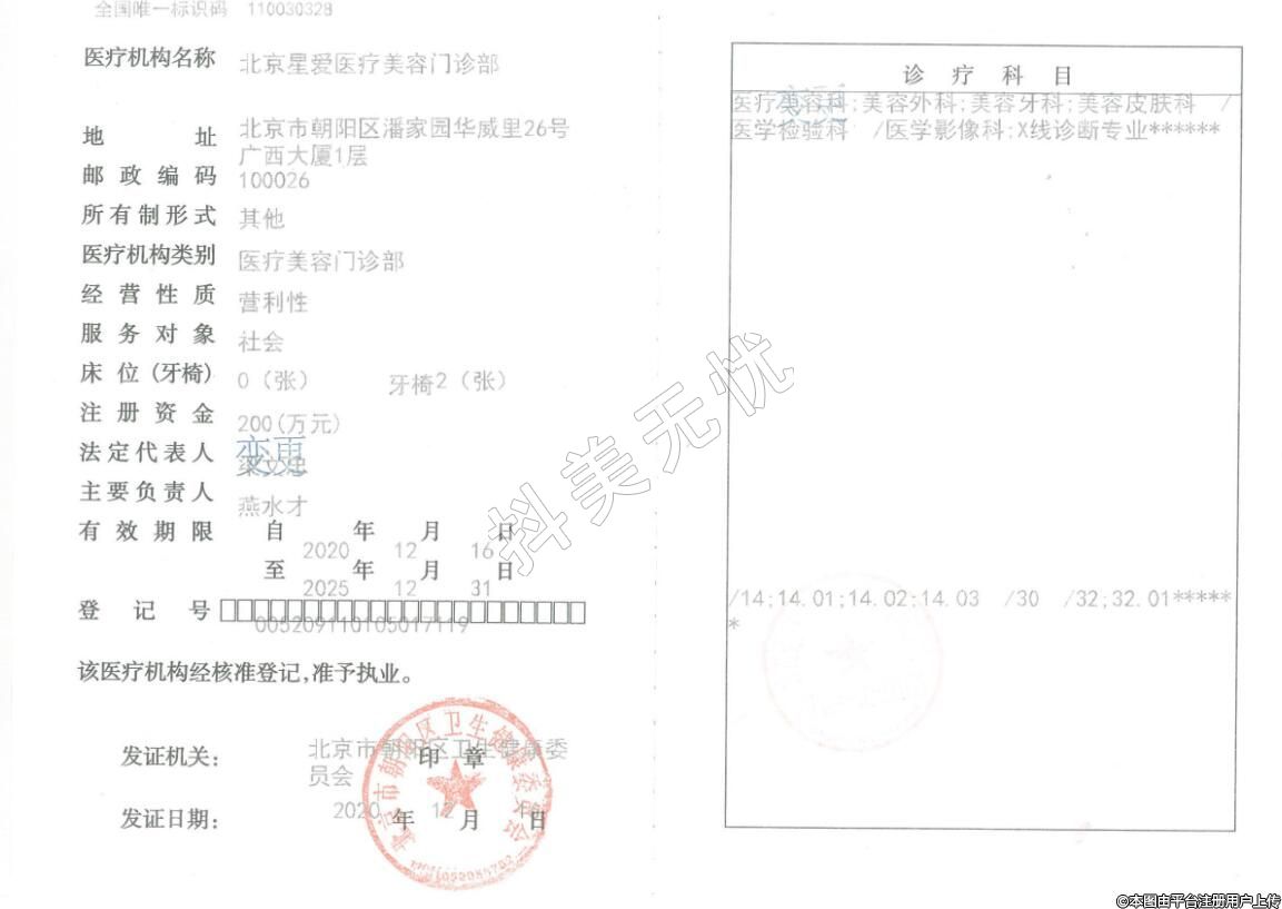醫(yī)療機構(gòu)名稱:北京星愛醫(yī)療美容門診部