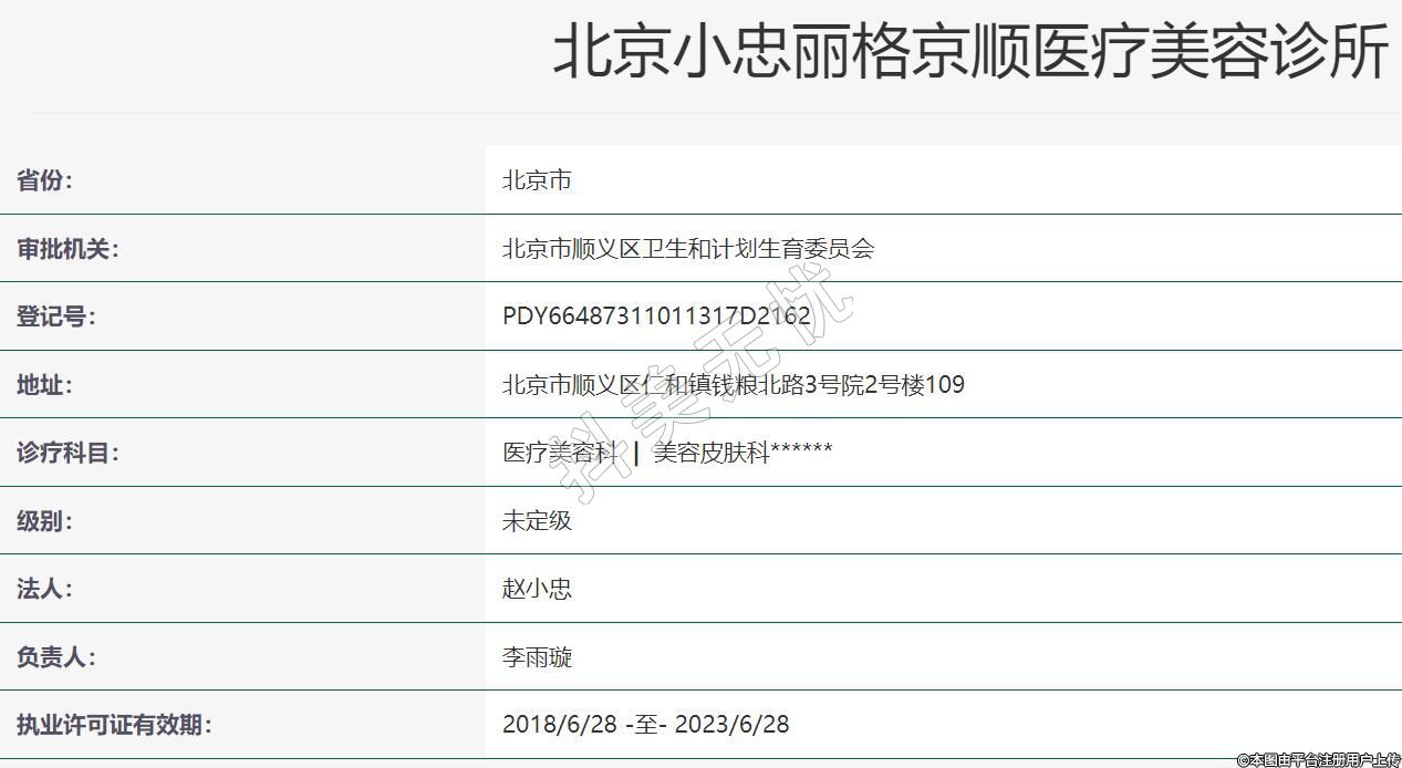北京小忠麗格京順醫(yī)療美容2017年09月01日成立,地址:北京市順義區(qū)仁和鎮(zhèn)錢糧北路3號院2號樓109,診療科目:醫(yī)療美容科 | 美容皮膚科******