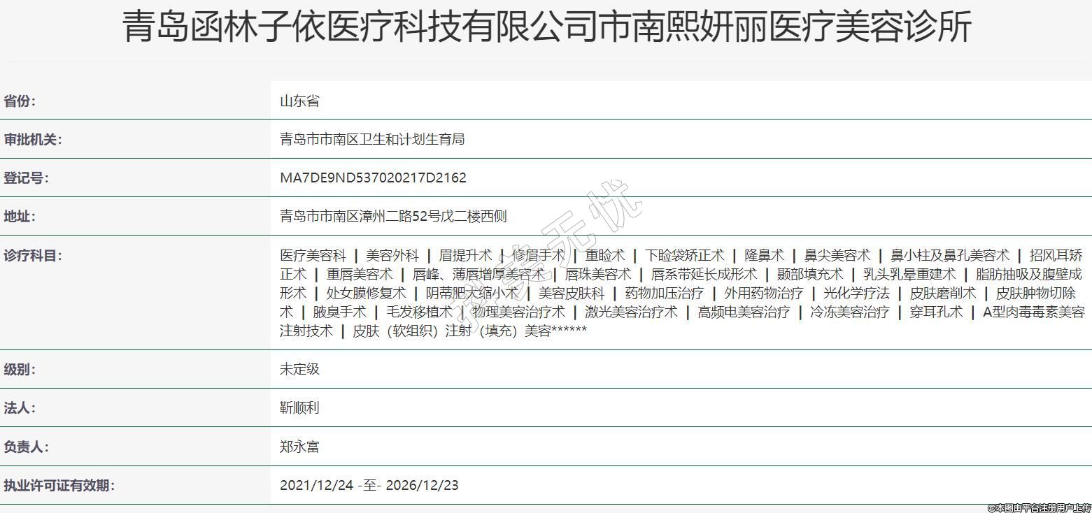 青島函林子依醫(yī)療科技有限公司市南熙妍麗醫(yī)療美容診所