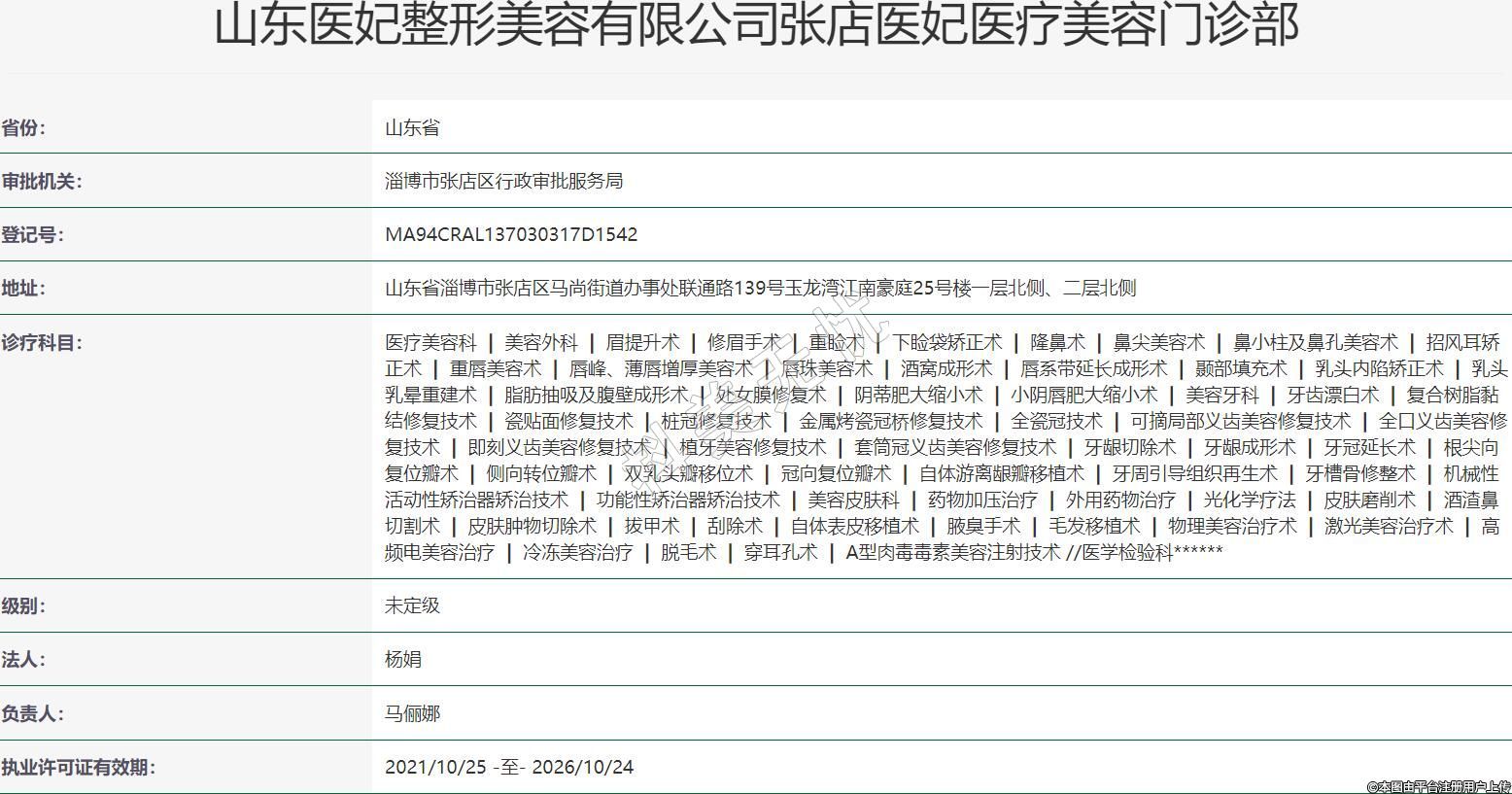 山東醫(yī)妃整形美容有限公司張店醫(yī)妃醫(yī)療美容門診部