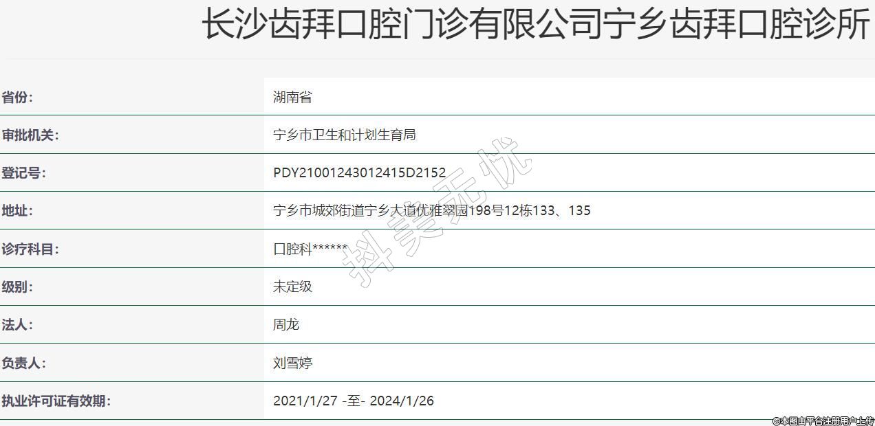 長沙齒拜口腔門診有限公司寧鄉(xiāng)齒拜口腔診所