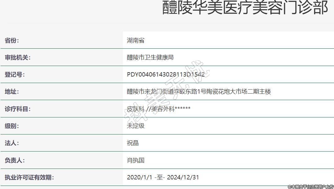 醴陵華美醫(yī)療美容2016-03-24成立,地址:醴陵市來龍門街道李畋東路1號陶瓷花炮大市場二期主樓,診療科目:皮膚科 //美容外科******
